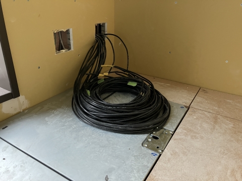こちらがサーバーラックを設置する予定の場所です。この地点から各所へLANケーブルを配線しました。