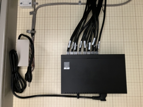 3フロアにわたる配線のため、各階のEPSにHUBを配置し、各部屋へと配線を分岐させました。