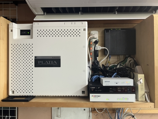 主装置は以前のものより大きくなったため、収容棚内の機器を整理してスペースを確保しました。